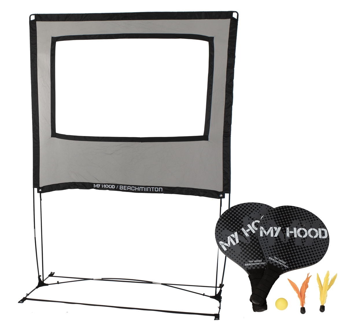 Sættet består af et net, to bat, to specialfjerbolde designet til udendørs spil samt en bold hvis spillet skal gå lidt hurtigere.
