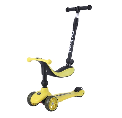 Når balance og motorik er tilstrækkelig udviklet kan Kick'n'Ride nemt omdannes til et smart løbehjul. To store hjul foran og en mindre bagerst gør løbehjulet måde stabilt og nemt at køre på.